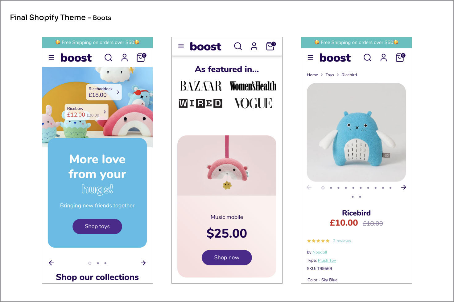 BACK TO MAIN BLOG As a Shopify web designer, I worked with our development team to improve the UX of the Chester Zoo Gift Shop through user-first web design to improve conversion rates. Online shopping is becoming one of the fastest growing trends worldwide. Just four years before the COVID-19 pandemic, the total value of global ecommerce transactions was 2.5 trillion dollars. When the first lockdown hit in early 2020, many people shopped online for the first time. As a result, global ecommerce transactions went up to 5.9 trillion dollars in 2022. Even as things are getting back to normal, it looks like the trend of shopping online is here to stay. Once you get a taste of that convenience, it’s tough to go back… Ecommerce also offers accessibility to everyone, thanks to services companies like Shopify or Squarespace, and digital marketplaces such as Amazon or Alibaba. Shopify e-commerce for Chester Zoo There are many ways to support Chester Zoo on their mission to prevent extinction. Visitors can donate in multiple ways through the website, including through every purchase made on their online gift shop. Chester Zoo commissioned Ultimate and our Shopify web designer specialists to redesign their ecommerce site to optimise and increase conversation rates. We also had to create a seamless journey and connection between the Chester Zoo main site and the Shopify online shop. SHOPIFY ECOMMERCE UX REVIEW How to choose the right Shopify theme Shopify is an ecommerce platform that allows retailers of all sizes to build online shops with an extensive suite of services, including checkout payments, shipping, marketing, and customer engagement tools. These templates are an overall design and layout of the front end. They determine how your online shop looks. We conducted an in-depth review and comparison of the current theme against other templates that included the most popular ecommerce features. We focused our analysis on three main aspects: Ecommerce tools and features to improve the user experience. Content that engaged with users. Design features and the level of flexibility available to customise the theme. Current theme review Envy was the Shopify theme used on the old Chester Zoo gift shop. It offers an intuitive design with four visual styles templates. The theme is great for flash sales as it has been designed with features for running time-based promotions. Some of these features include; a countdown timer, display discounts, promo banners and popups or free gifts. In order to understand the features included in the theme, we duplicated the old shop to test the available components and sections. We also tested the full user flow for the checkout process, and compiled a list with recommendations for improvements: Design customisation. This theme can be easily customised to reflect the Chester colours and typography. However, editing code is necessary to better reflect the branding. Filtering features. More advanced filtering options could be added to better improve the UX, such as adding product type or price, as well as the ability to sort results options such as by best selling, featured, alphabetically or top rated. Listing product pages. Having the ability to add ratings and reviews would count above the product price. An integrated modal “quick view” is available to visualise the product details on the same listing page. The modal also allows users to complete other actions like selecting “add to cart” or “buy now”. Product page and checkout Adding more actions like a “add to wishlist” button would be beneficial. Having the ability to add ratings about the product price, and a review count can help users decide which product is perceived to be better. Including a shortcut link on review count allows the user to navigate to the review section. Customer Reviews are important. Customers rely on online reviews as a valuable source of product information. The ability to highlight the charity message of Chester Zoo in the product benefit section allows a reminder that part of the cost of the product is invested in the mission of preventing extinction. This allows for the introduction of cross selling during the checkout process. Alternative Shopify themes We also compared the current theme with other alternatives that included the tools needed to maximise the conversion rate: advanced filtering, SEO, promotions, flexible and customisable sections, etc. The first one, Wookie, is a great theme for versatility with an extensive library of prebuilt layout pages and content blocks for any specific needs and requirements. The wide variety of layouts and sections make this theme highly customisable. The second theme, Boost, is great for editorial content with feature-rich sections to support brand storytelling. All three themes include all the popular ecommerce features. We chose Boost as the final Shopify theme because the new gift shop needed longer-form text sections and video content to show and explain the product benefits: how every purchase can help with their conservation projects around the world. UX recommendations to increase the conversion rate With a final theme chosen, we created a list of actionable recommendations for design improvements and a better Shopify ecommerce UX: Clear product categories From soft toys to botanic gins, the Chester Zoo online shop has a wide range of products. We suggested that a reduced number of main categories be accessible from the main navigation, with a dropdown feature added to expand the rest of the product sub-categories. Fast search function We suggested that the search bar be accessible from every page with suggested matching results dynamically pulling through as the user types a query. Advanced filtering We recommended filtering options on product list pages, prioritising price range as the most important factor for the customers to narrow the search. We suggested that a dynamic sorting function be added to change results 